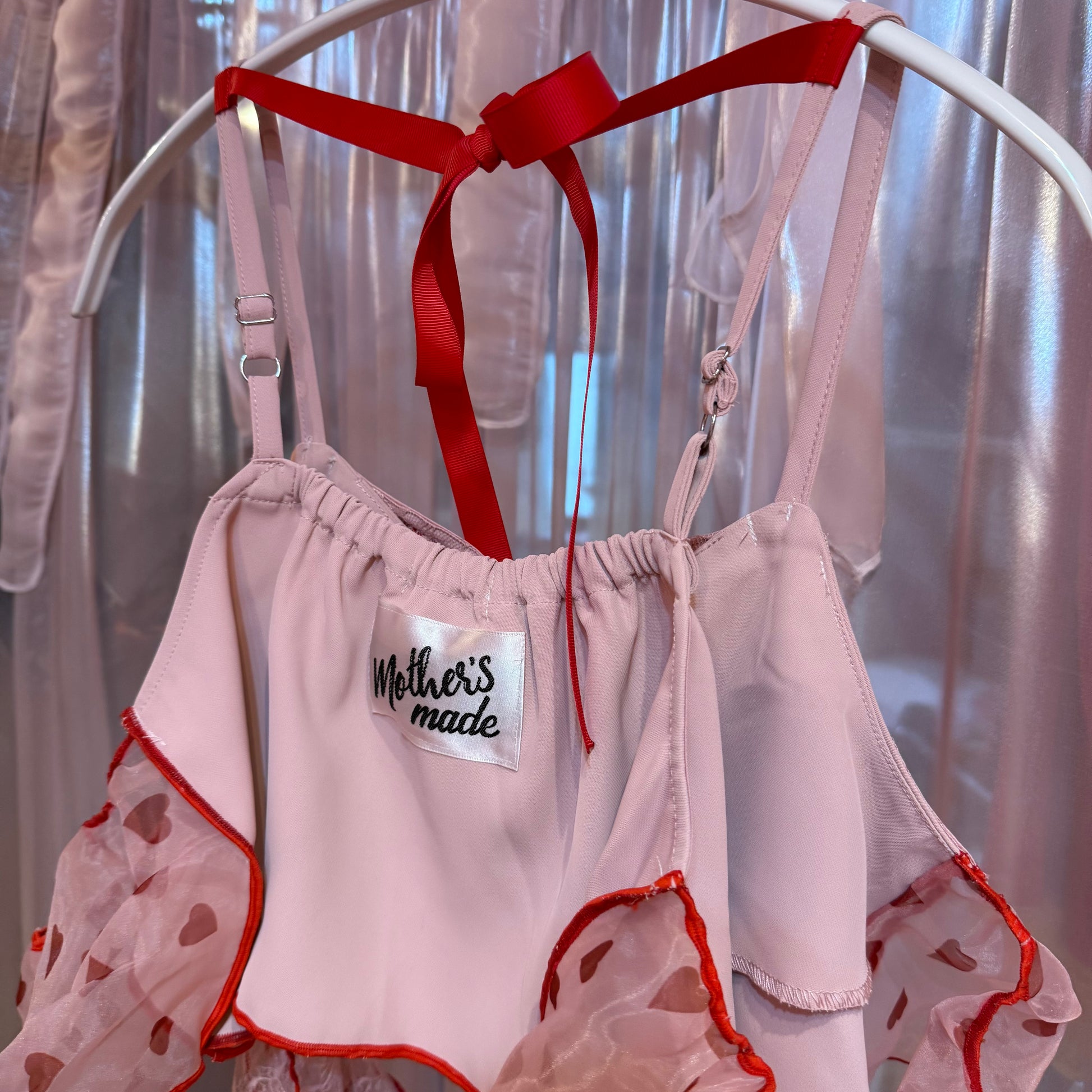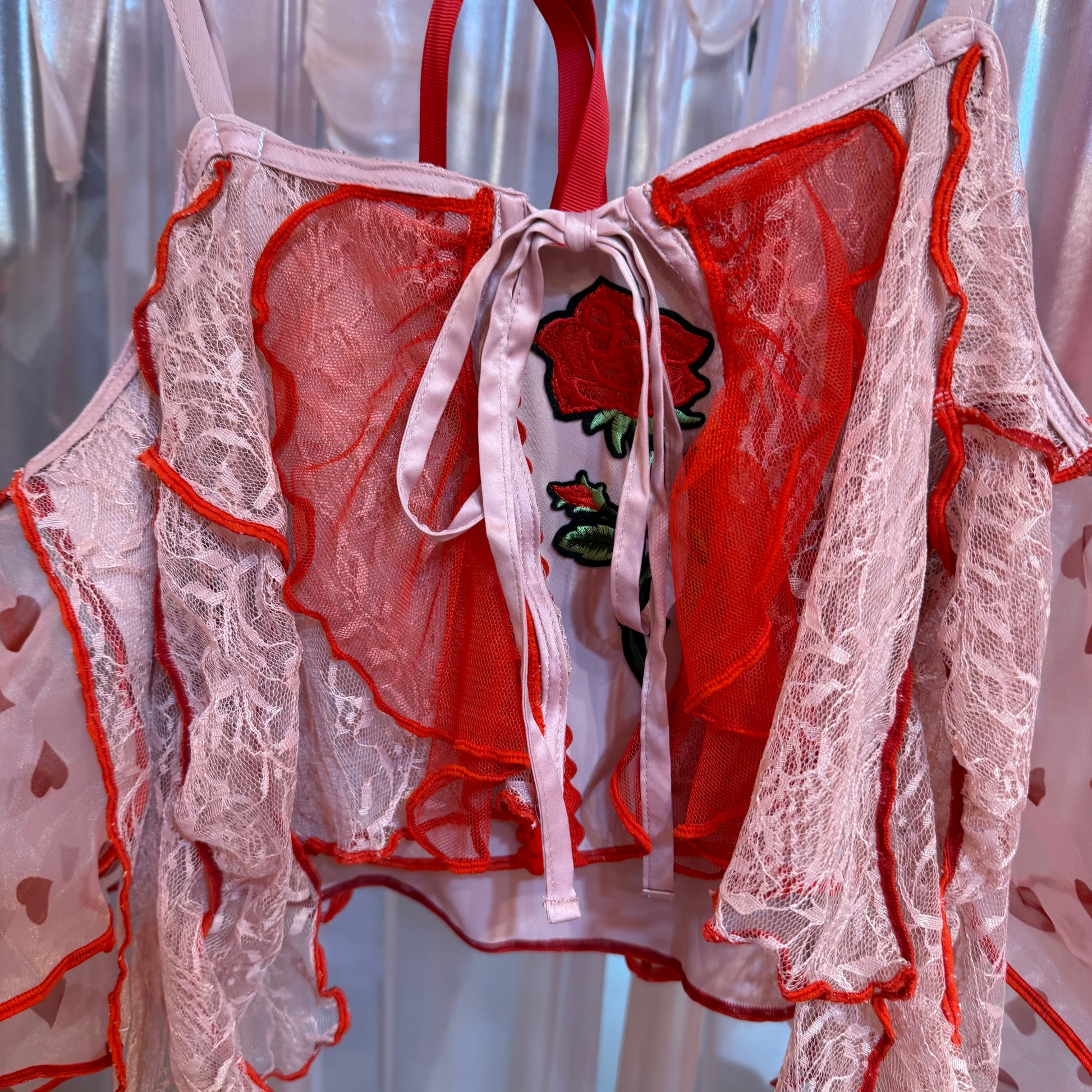 ピンク薔薇刺繍レースキャミソール