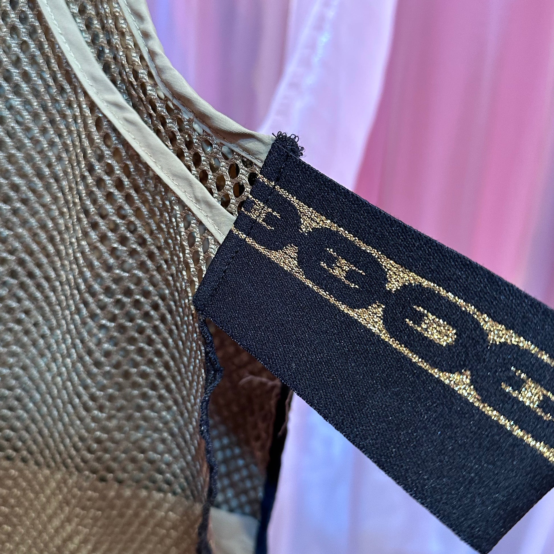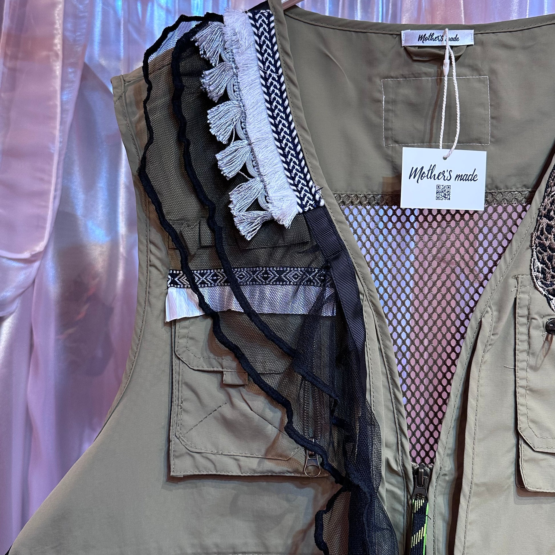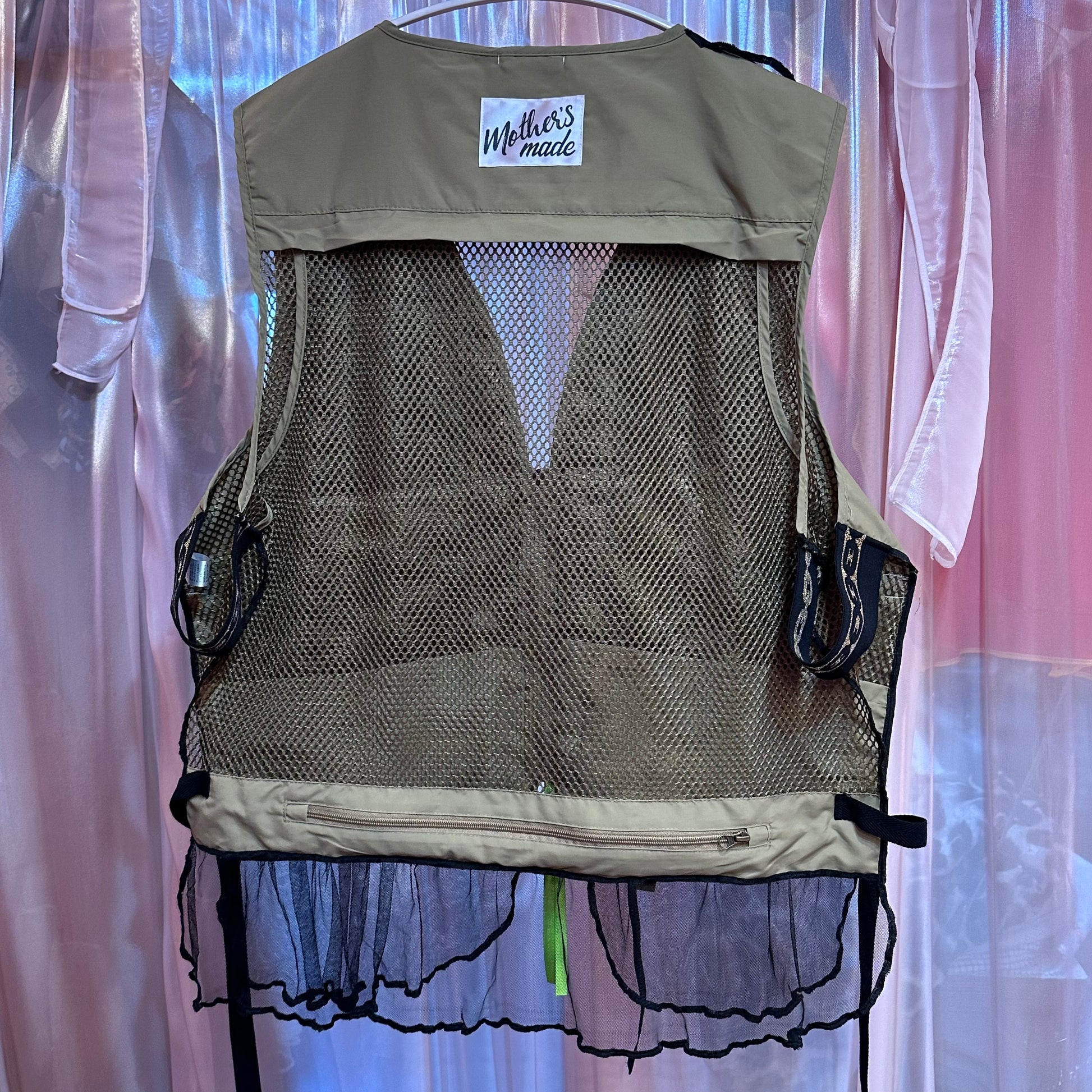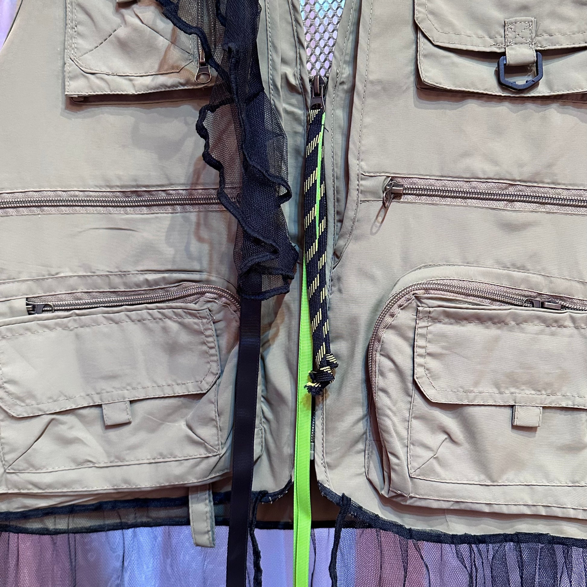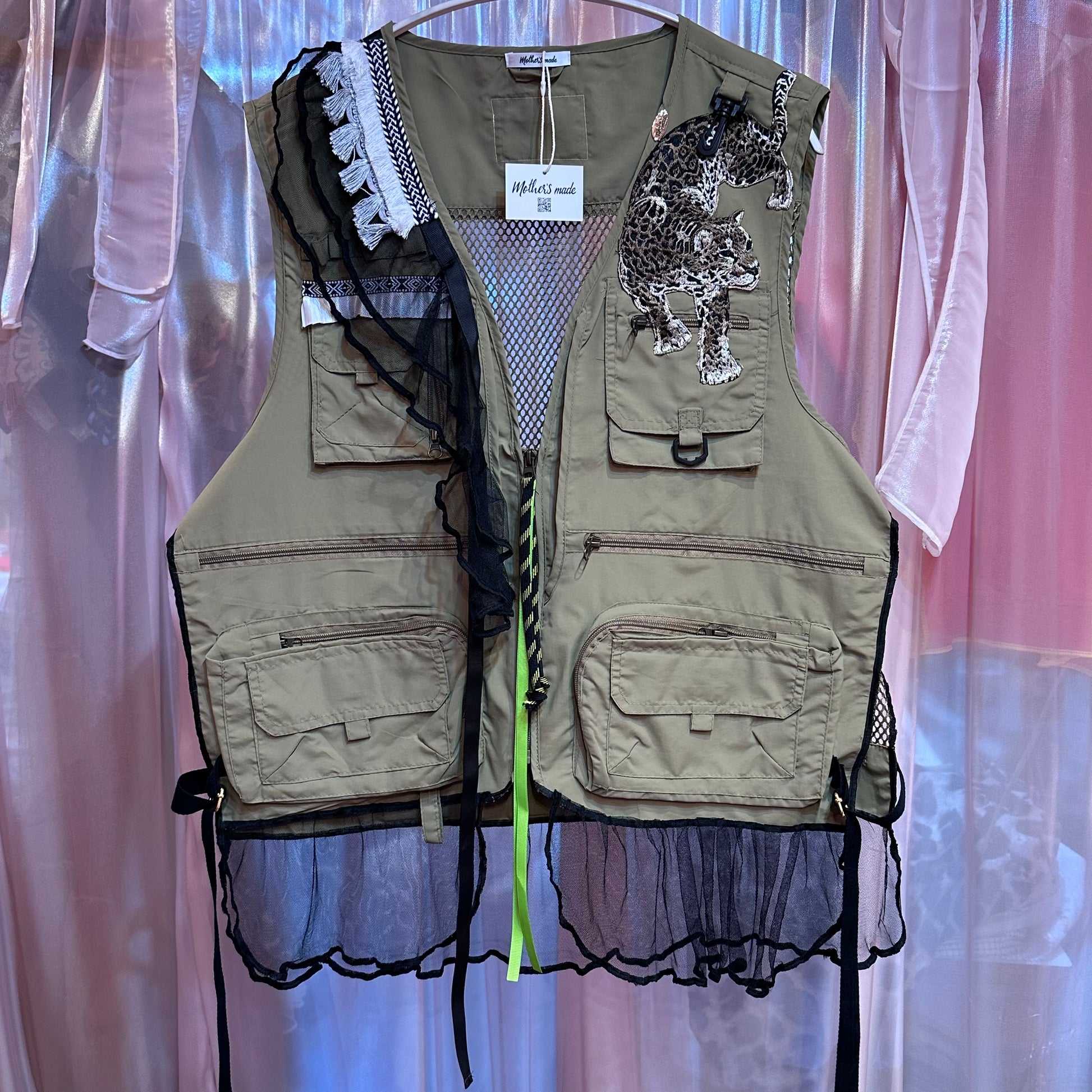 ベージュヒョウワッペンフィッシングチュールベスト