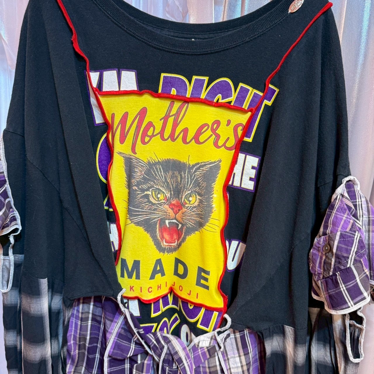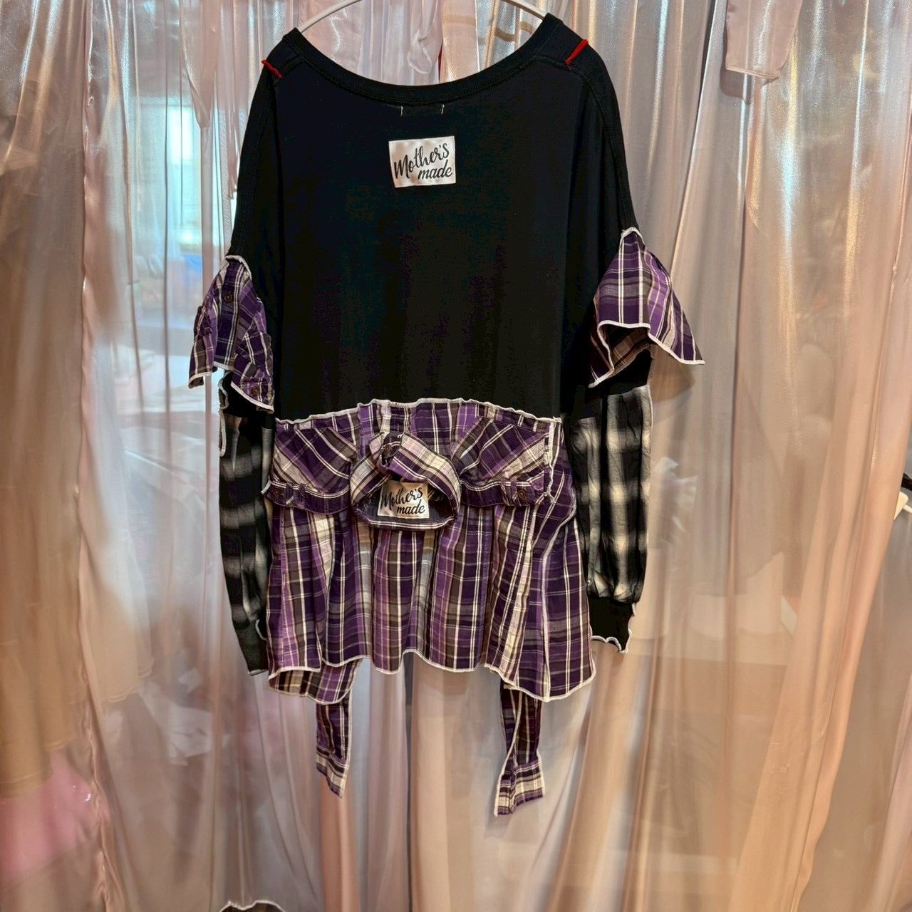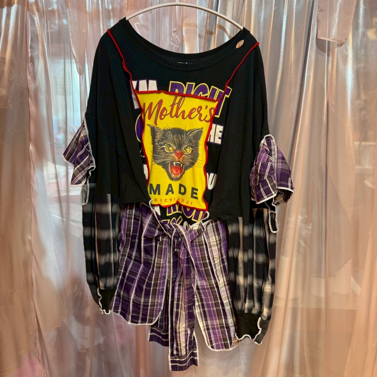 猫チェック柄2-wayトップス
